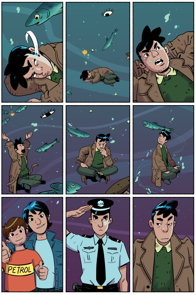 We developed "Anchovie Akiyama" on the side while working on "Everyday Hero Machine Boy," and it eventually got picked up for a 24-episode season on Webtoon Factory. Unfortunately, Irma had to bow out of the project due to scheduling conflicts. I considered shelving the project, but there was something really endearing about this quirky detective story that I just couldn't let go of, so I soldiered on and I'm glad I did.