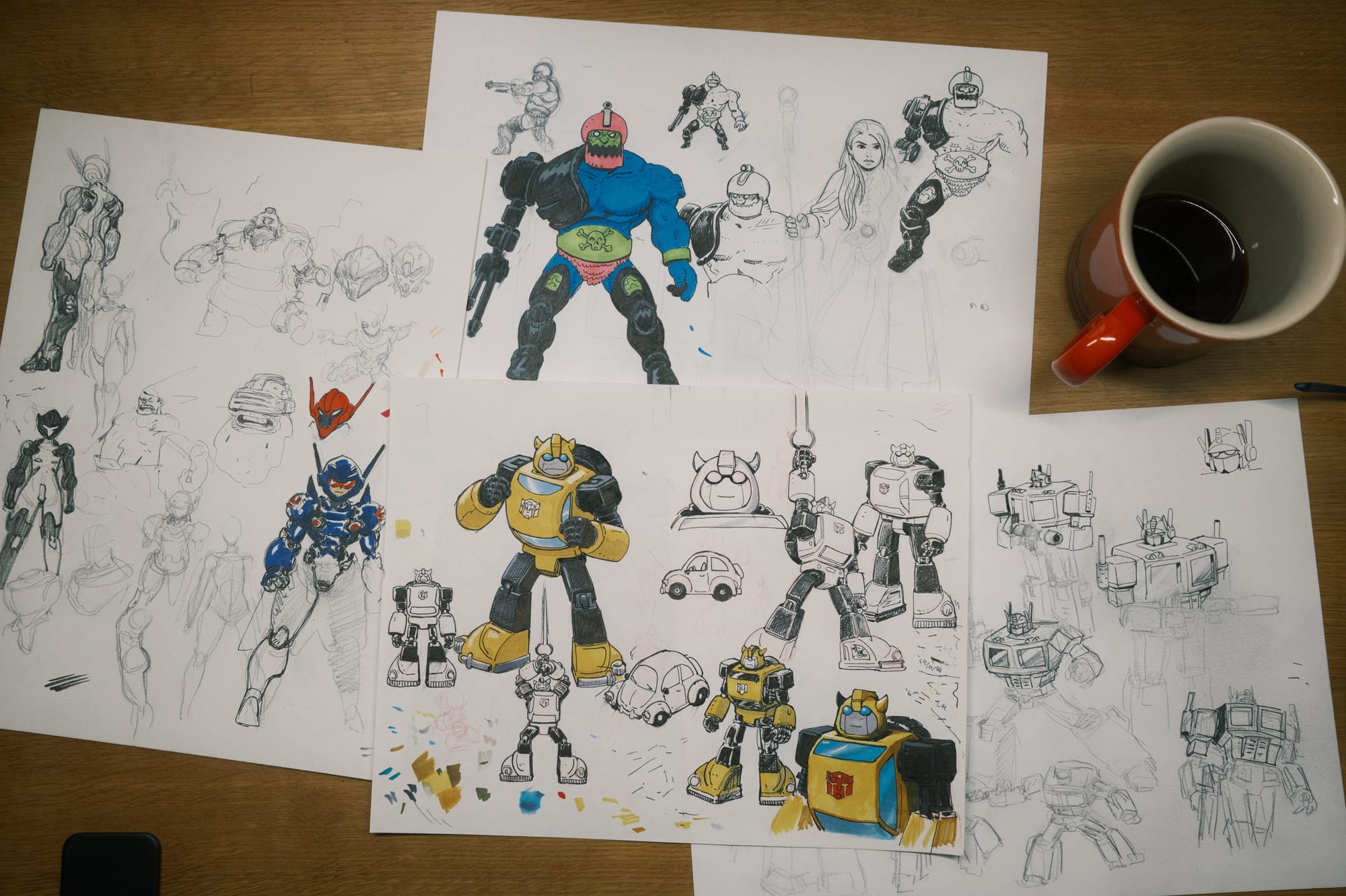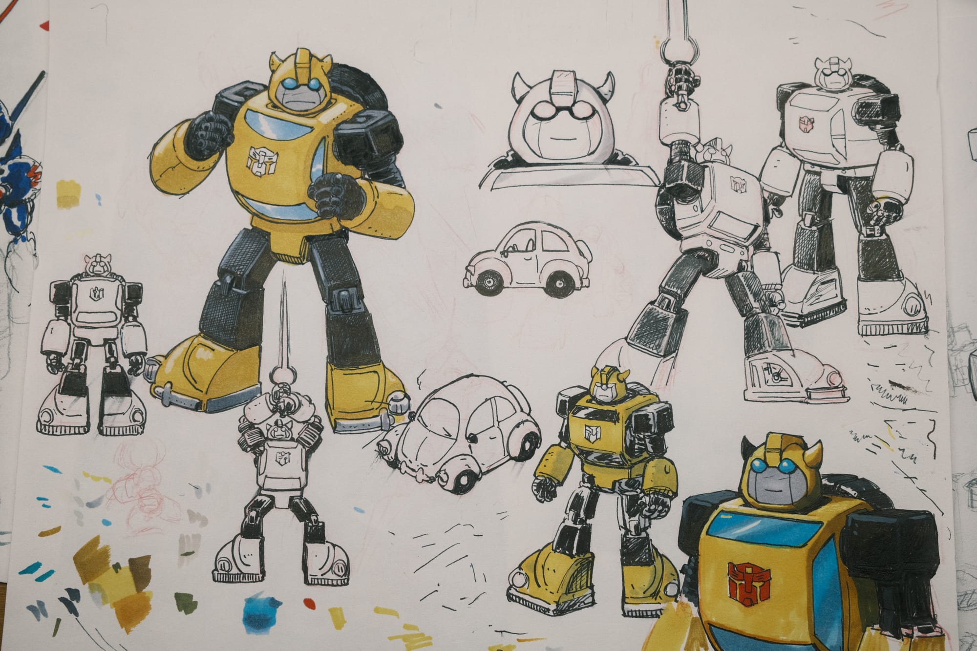 I have found that these design studies are a really great was to start the work day when my brain is tired. It's almost like life drawing, I'm not trying to create but understand how a character works. After a third or fourth doodle, I usually find I can abstract what elements make up the character and what elements I can discard and change and make my own. That's when the fun usually happens. Here's my take on Bumblebee: