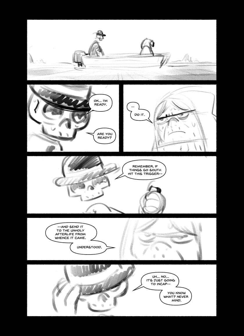 And finally, work continues steadily on the second volume of "The Strange Tales of Oscar Zahn". I'm currently about 70 pages into the layouts of what will be an approximately 100 page story. Including "The Ghost of Witch Lake", the book will be around a similar length to the first book (230ish pages).