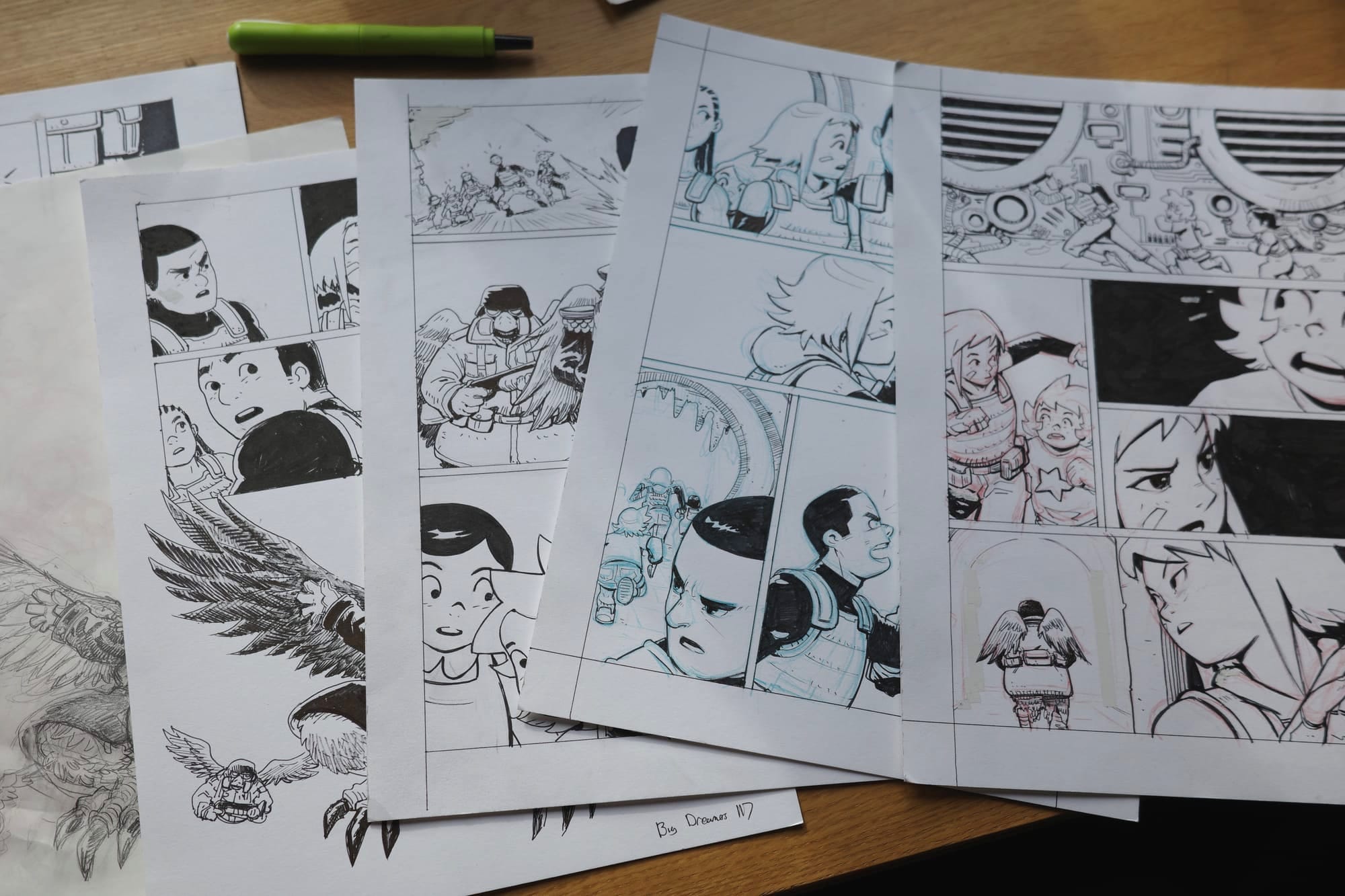 This turned out to be a blessing in disguise. I could reconnect my Cintiq to continue working, but after experiencing the freedom of a lighter tablet, I decided to try the opposite and draw comic pages traditionally instead.
