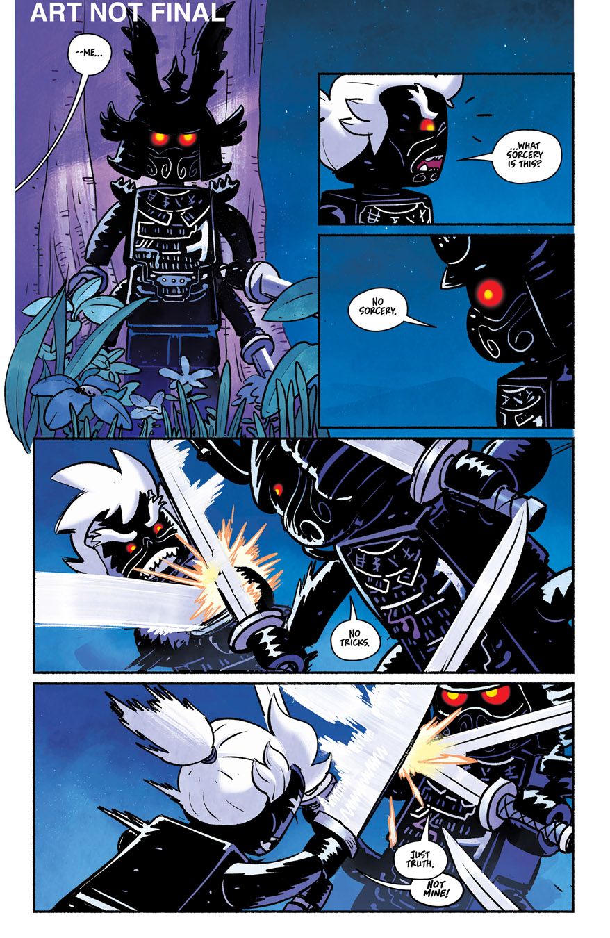 I had a lot of fun drawing from a variety of influences including Kurosawa films, Ghibli movies (particularly Princess Mononoke), and of course from the Ninjago TV series itself. LEGO was very open and supportive to my darker take on their beloved children's franchise and in the end, I think we were able to produce a comic that both appealed to the hardcore Ninjago fan and to new readers alike.
