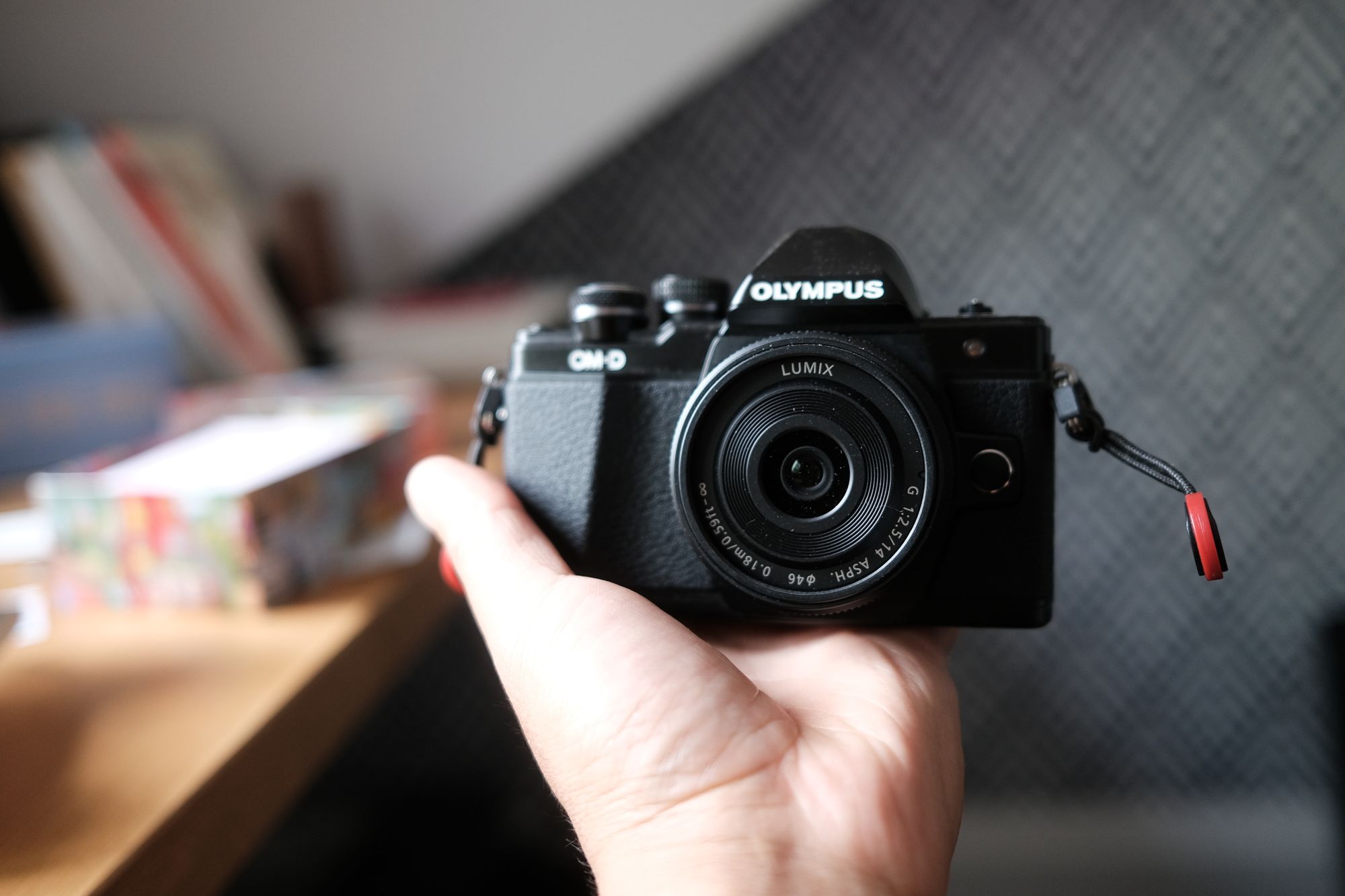 On the plus side, I did get snag a sweet deal on a refurbished Olympus E-M10 Mark II. It's a tiny little Micro Four Thirds camera that takes wonderful images, uses interchangeable lenses, and fits in the palm of your hand as evidenced by this photo:
